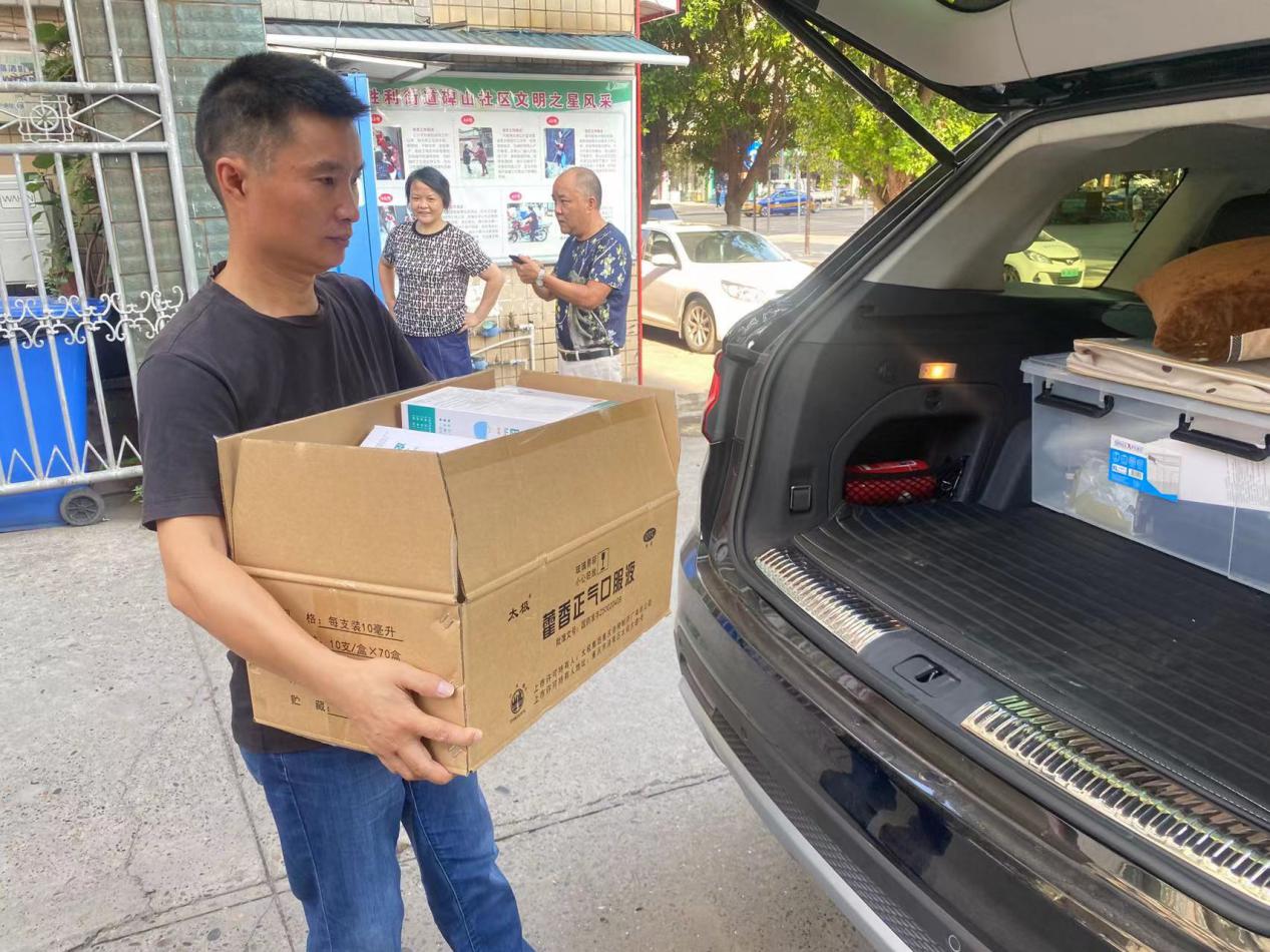 鴻達設計公司特購買礦泉水、藿香正氣液和口罩贈送給雙橋收費站、雙才收費站、椑木收費站、郭北收費站、田家收費站、小河口收費站、石子國省干道等7個卡點的工作人員。