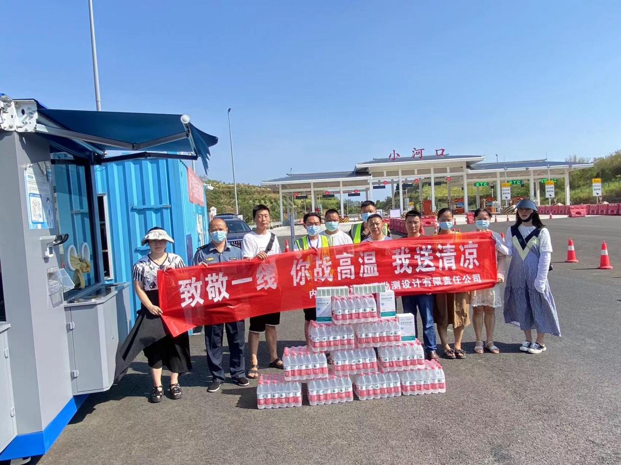 近期,我市出現(xiàn)持續(xù)性高溫晴熱少雨天氣,防溫降暑工作迫在眉睫。為承擔國企責任,體現(xiàn)國企擔當,積極貢獻應有力量,2022年8月24日內江市鴻達交通勘測設計有限責任公司開展“致敬一線 你戰(zhàn)高溫 我送清涼”活動,向奮戰(zhàn)在一線的抗疫和執(zhí)法人員送清涼。